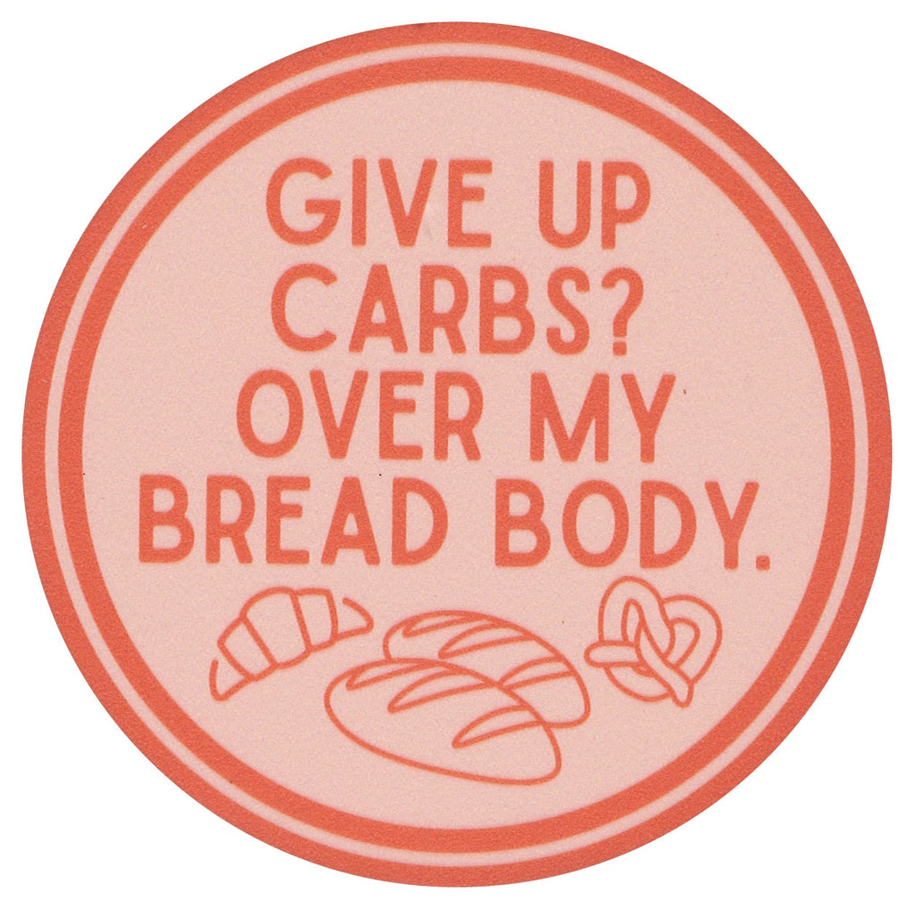 Add a humorous touch to your kitchen or dining area with the Give Up Carbs? Over My Bread Body Coaster! This playful design features the witty phrase, "GIVE UP CARBS? OVER MY BREAD BODY," making it perfect for bread lovers and foodies alike. It’s a fun reminder to embrace your love for delicious carbs, and it's sure to spark laughter during gatherings with family and friends!