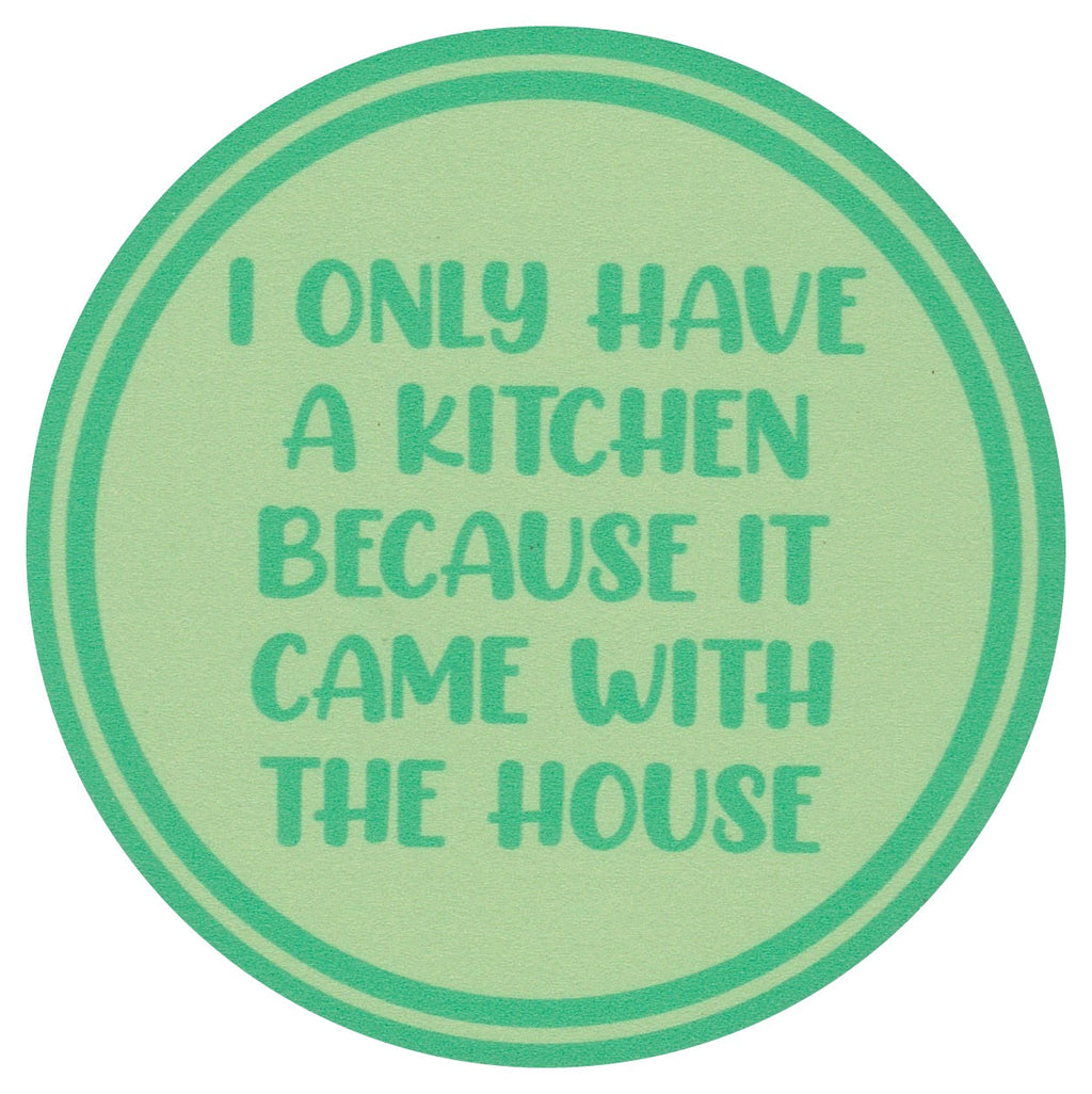 Add a touch of humor to your home with the I Only Have a Kitchen Coaster! This playful coaster features the witty phrase, "I ONLY HAVE A KITCHEN BECAUSE IT CAME WITH THE HOUSE," making it a perfect conversation starter for anyone who might not consider themselves a culinary whiz. It’s a lighthearted addition to your kitchen or dining area, ideal for protecting your surfaces while showcasing your sense of humor.