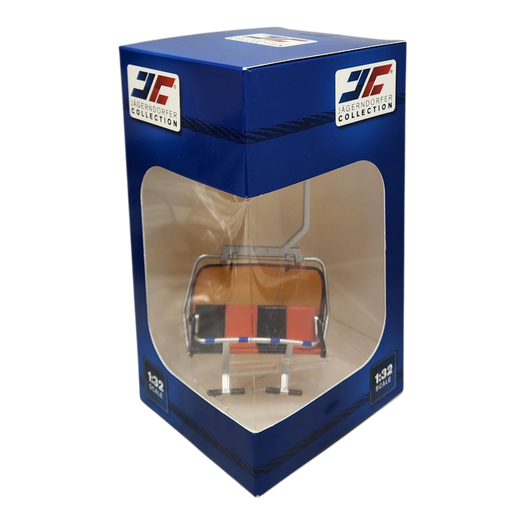 Upgrade your model ski resort with this detailed four-seater chair lift by Jägerndorfer. Elegantly designed for easy attachment with its spring clip mount, this adds a dynamic touch to your existing Electric Cablecar set. The chair lift features movable footrests and a windscreen, enhancing the realism and giving your miniature skiers the ultimate ride to the mountain peak.