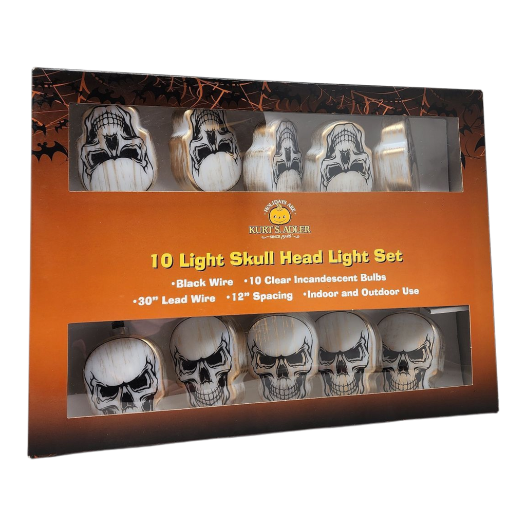 Get ready to spook up your Halloween decor with the 10 Light Skull Head Light Set! This enchanting string of lights features 10 intricately designed skull heads that will elevate any haunted house or festive gathering. Each bulb is illuminated by incandescent light, casting an eerie glow that sets the perfect mood for spooky celebrations. With a 30-inch wire and 12-inch spacing between each skull, this set is easy to drape over doorways, along fences, or anywhere you want to add a creepy touch.
