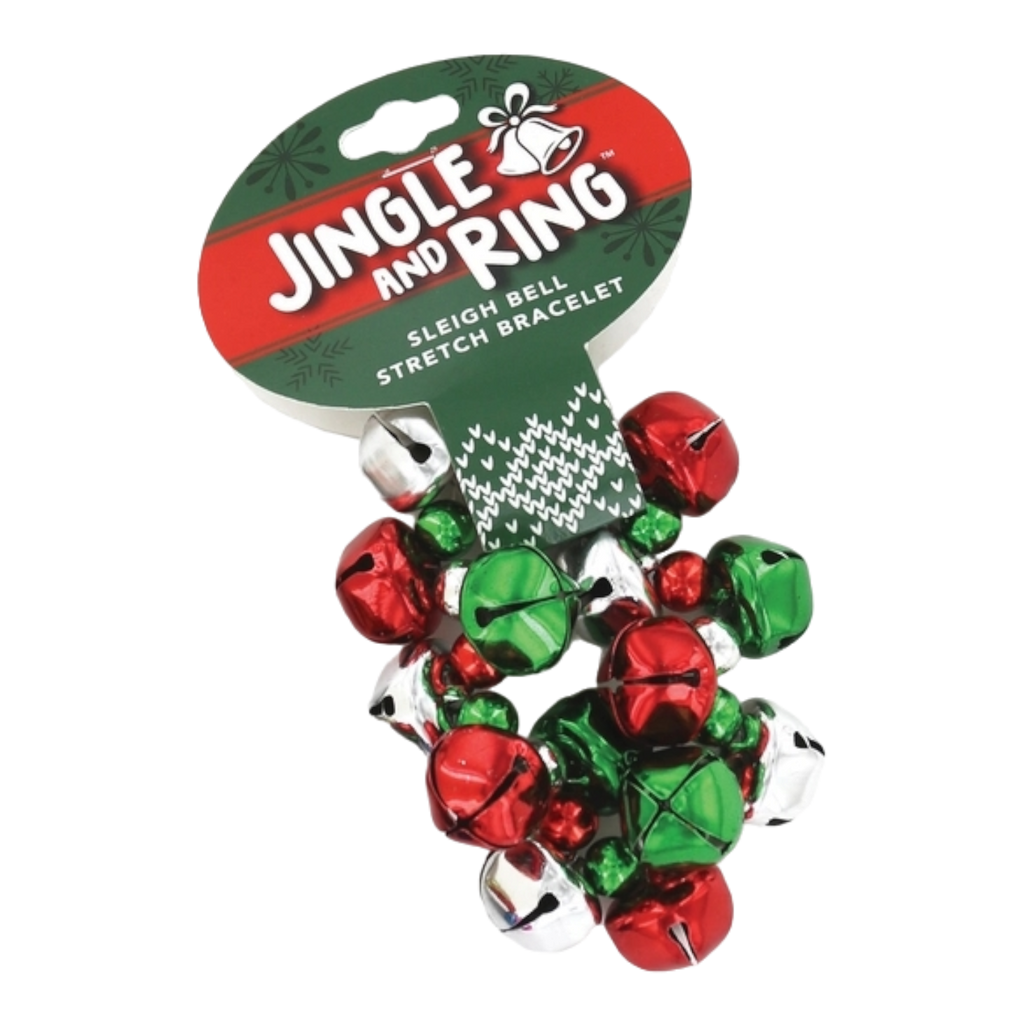 Add some jingle to your holiday season with the Jingle and Ring Sleigh Bell Stretch Bracelet and spread the festive joy everywhere you go!