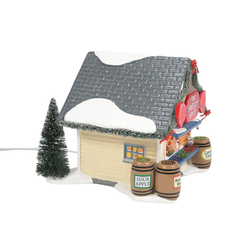 Indulge in the sugary charm of The Sweet Spot building from Department 56's Snow Village Series! Standing at 5.43 inches tall and measuring 5.3 inches wide by 6.02 inches long, this delightful sweet shop is sure to become a centerpiece in your holiday village display. Featuring a whimsical design adorned with colorful candy-themed signage and festive decorations, The Sweet Spot invites visitors to indulge in a world of treats.