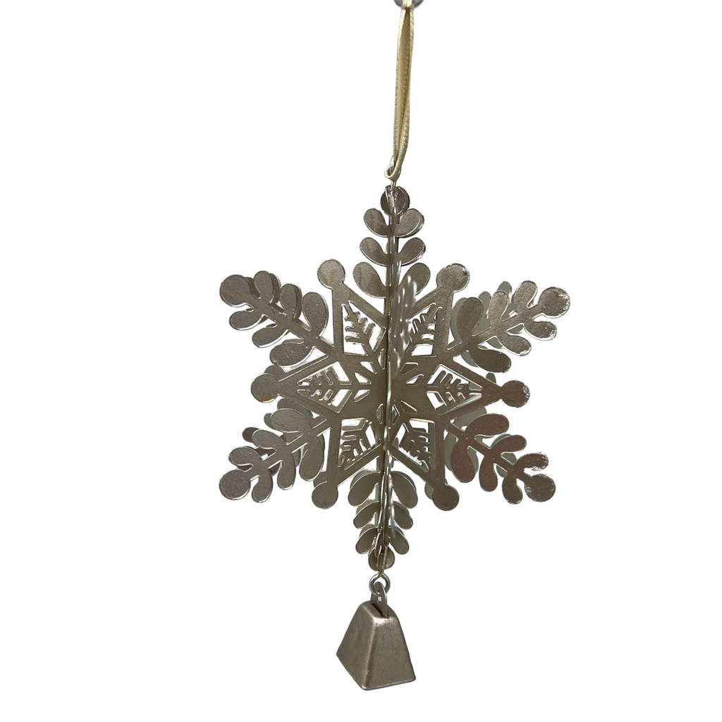 Metal Die Cut Snowflake With Rounded Branch Form and Dangle Bell Ornament