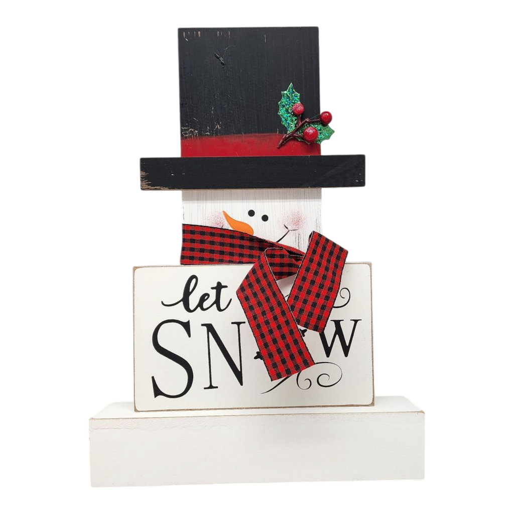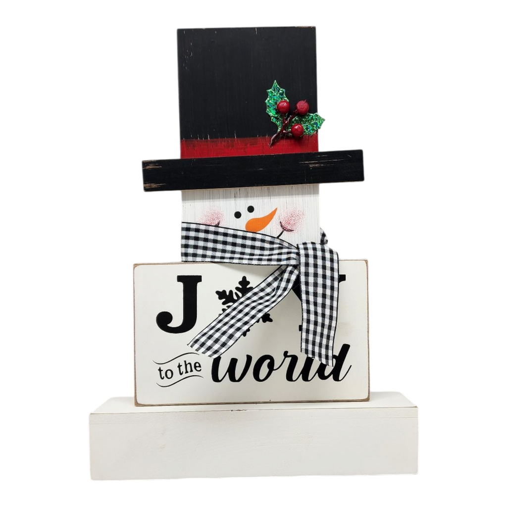 Celebrate the spirit of winter with our charming Snowman Block Decor! Standing at 11 inches tall, these delightful wooden pieces feature adorable snowman designs that are sure to bring a smile to your face. Each snowman dons a classic top hat and a cheerful expression, while their festive accessories, including charming scarves, enhance their seasonal charm. With phrases like “Let it Snow” and “Joy to the World” artfully displayed on the blocks, these decorations perfectly capture the joy of the winter holiday.