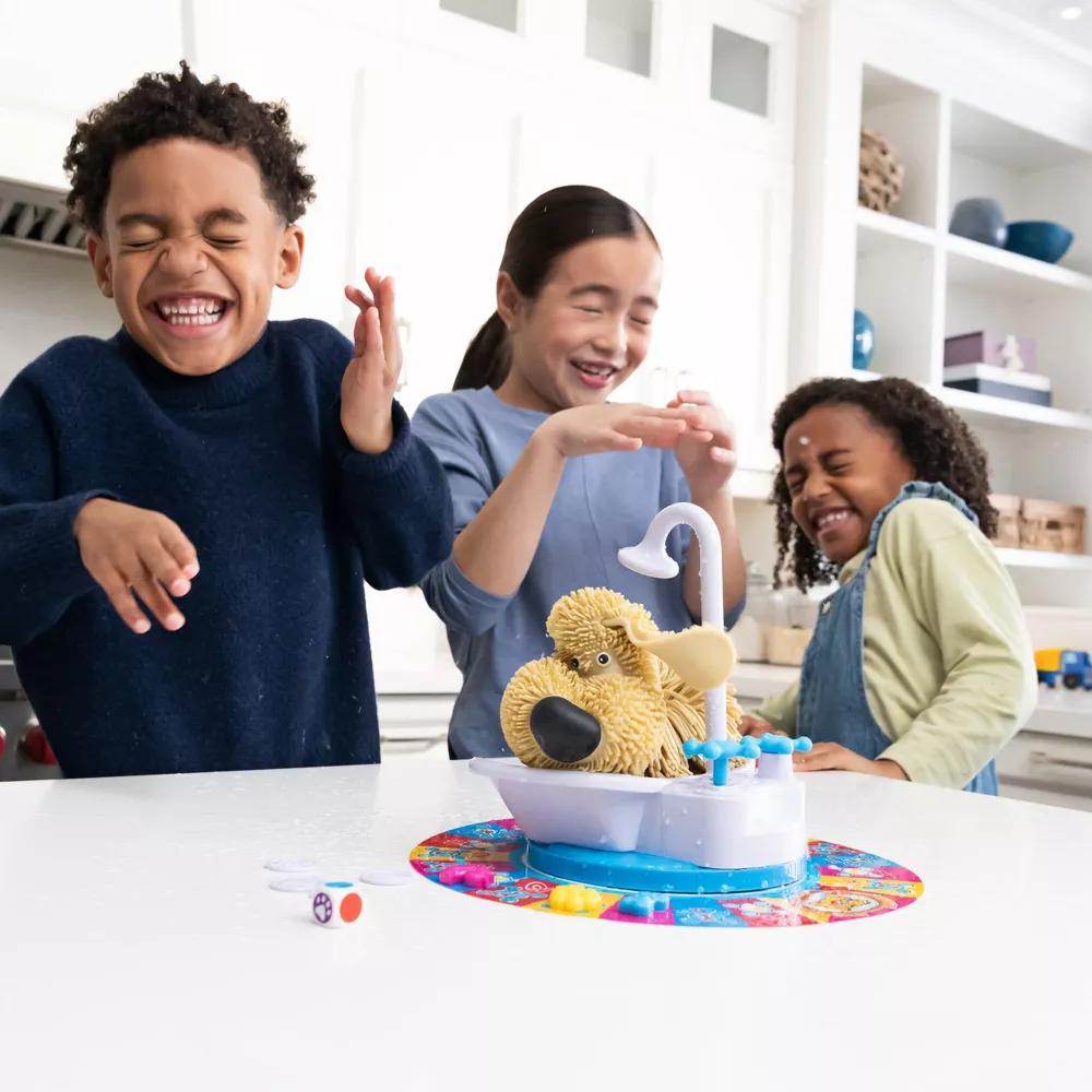 Soggy Doggy is the showering, shaking, wet doggy game from Spin Master Games. Race around the board and take turns giving Soggy Doggy a bath. But watch out- he loves to shake himself dry! Get soaked and you’re sent back to start. Make it around the bathtub and you win! Soggy Doggy is the action-packed, suspense-filled kids board game ages 4-8 of bath time fun. Grab 3 AA batteries (not included) and 2-4 players to get started! Can you believe that over 2 million units of this game have been sold already? Children and families everywhere love Soggy Doggy.