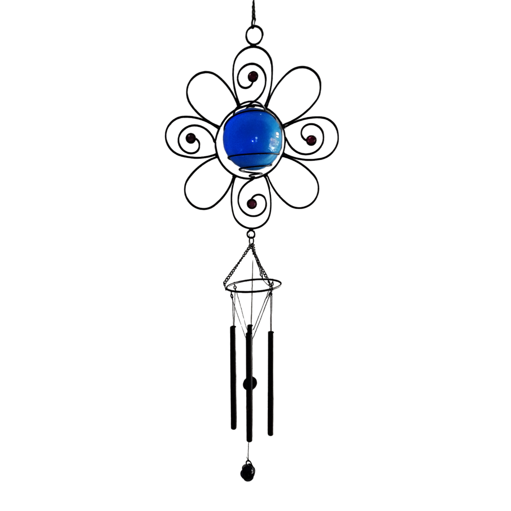 An Artistic windchime with a Solar secret. Charges using abient sunlight during the day, and turns on automatically at night when the light gets low enough.