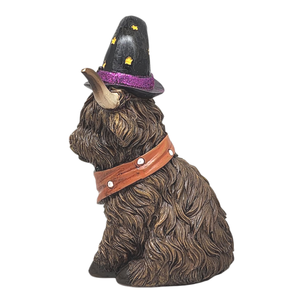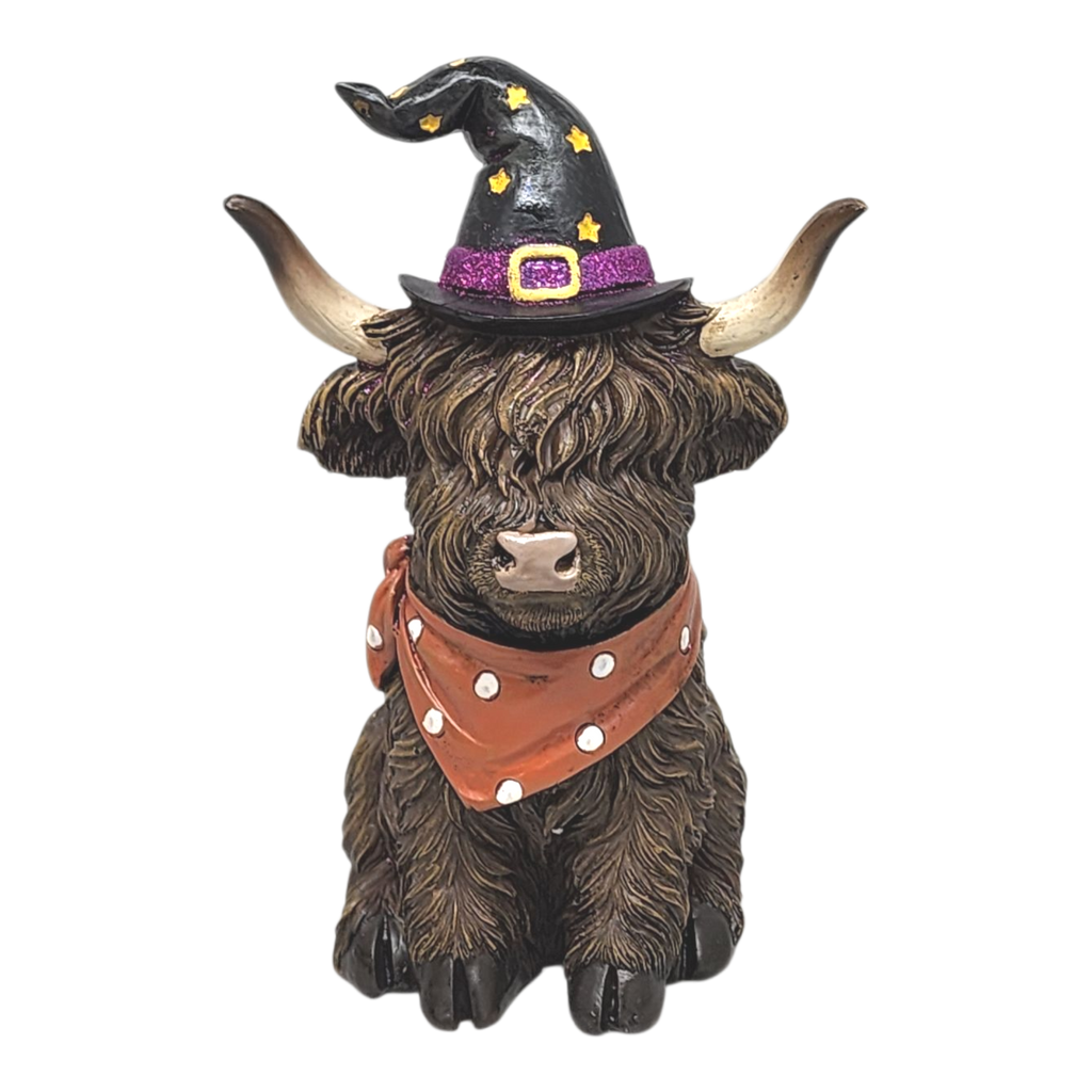 Get ready to add a delightful touch of whimsy to your Halloween decor with our Spook-tacular Halloween Highland Cow! Standing at 7.68 inches tall, this charming resin figure showcases a fluffy Highland Cow adorned with a playful witch’s hat decorated with purple stars and a jaunty orange bandana, making it the perfect companion for your festive celebrations. With its endearing expression and intricate details, this Halloween-themed cow is sure to bring smiles and laughter to children and adults alike.