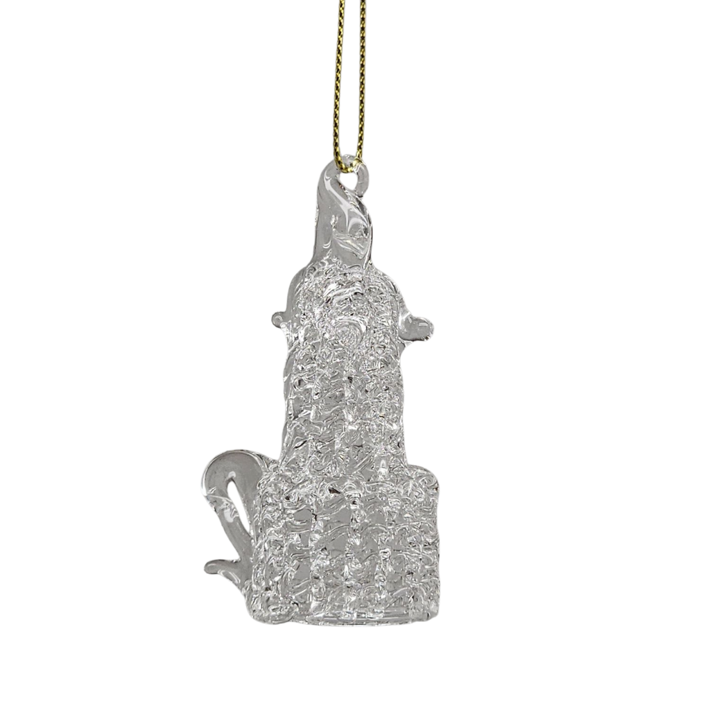 Ready for hanging with a gold braided cord, this elegant ornament comes gift boxed, making it the perfect gift for family and friends or a lovely treat for yourself. Whether you choose to adorn your Christmas tree, create a centerpiece, or add it to a collection of holiday treasures, the Spun Glass Candlestick Ornament will bring a touch of shimmer and harmony to your decor. Celebrate the season with this enchanting piece, reminding all of the warmth and joy of the holidays!