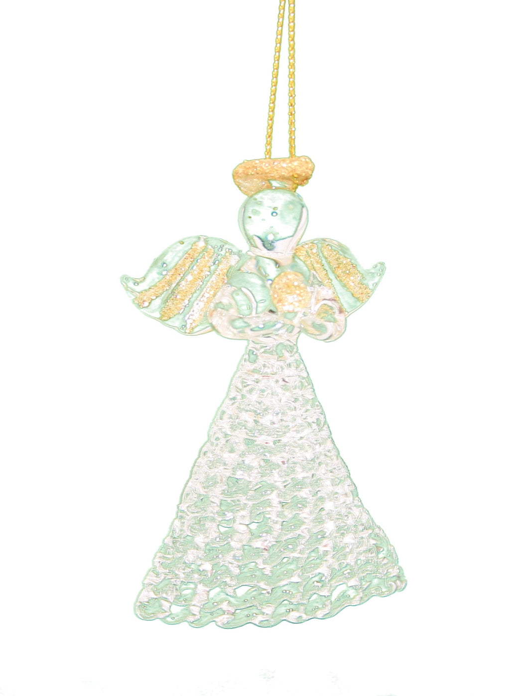 Celebrate the joy of giving with this beautifully detailed spun glass angel ornament, standing just around 3 inches tall. This radiant angel holds a shimmering golden gift in its hands, embodying the spirit of generosity and goodwill that pervades the holiday season. The angel’s wings and halo are accented with sparkling gold glitter, adding a dazzling touch to its delicate glass form. Angels have long been symbols of hope and protection, making this ornament a heartwarming addition to your Christmas décor or a thoughtful gift for loved ones.