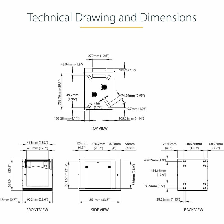 StarTech.com 12U 19" Wall Mount Network Cabinet - 4 Post 24" Deep Hinged Server Room Data Cabinet- Locking Computer Equipment Enclosure w/Shelf - Flexible Vented IT Rack - Pre-Assembled. Type: Wall mounted rack, Rack capacity: 12U, Maximum weight capacity: 90 kg, Key lock, Cable management. Weight: 45.1 kg. Product colour: Black