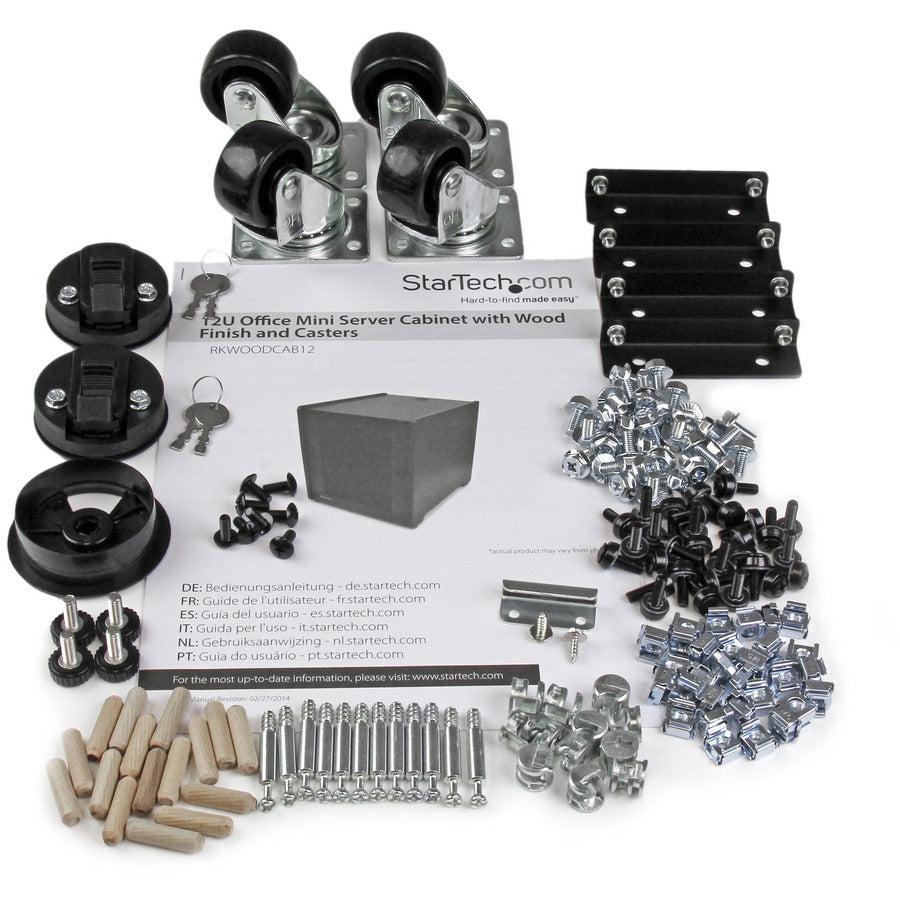 StarTech.com 12U Rack Enclosure Server Cabinet - 20.6 in. Deep - Wood Finish - Flat Pack. Type: Freestanding rack, Rack capacity: 12U, Maximum weight capacity: 136.1 kg, Key lock, Castor wheels, Product colour: Black