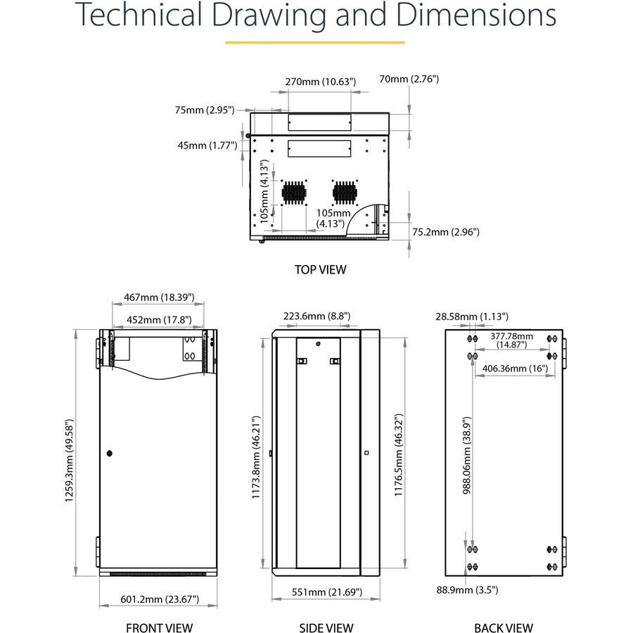 StarTech.com 26U 19" Wall Mount Network Cabinet - 16" Deep Hinged Locking IT Network Switch Depth Enclosure - Assembled Vented Computer Equipment Data Rack w/Shelf & Flexible Side Panels. Type: Wall mounted rack, Rack capacity: 26U, Maximum weight capacity: 90 kg, Key lock, Cable management. Weight: 74 kg. Product colour: Black