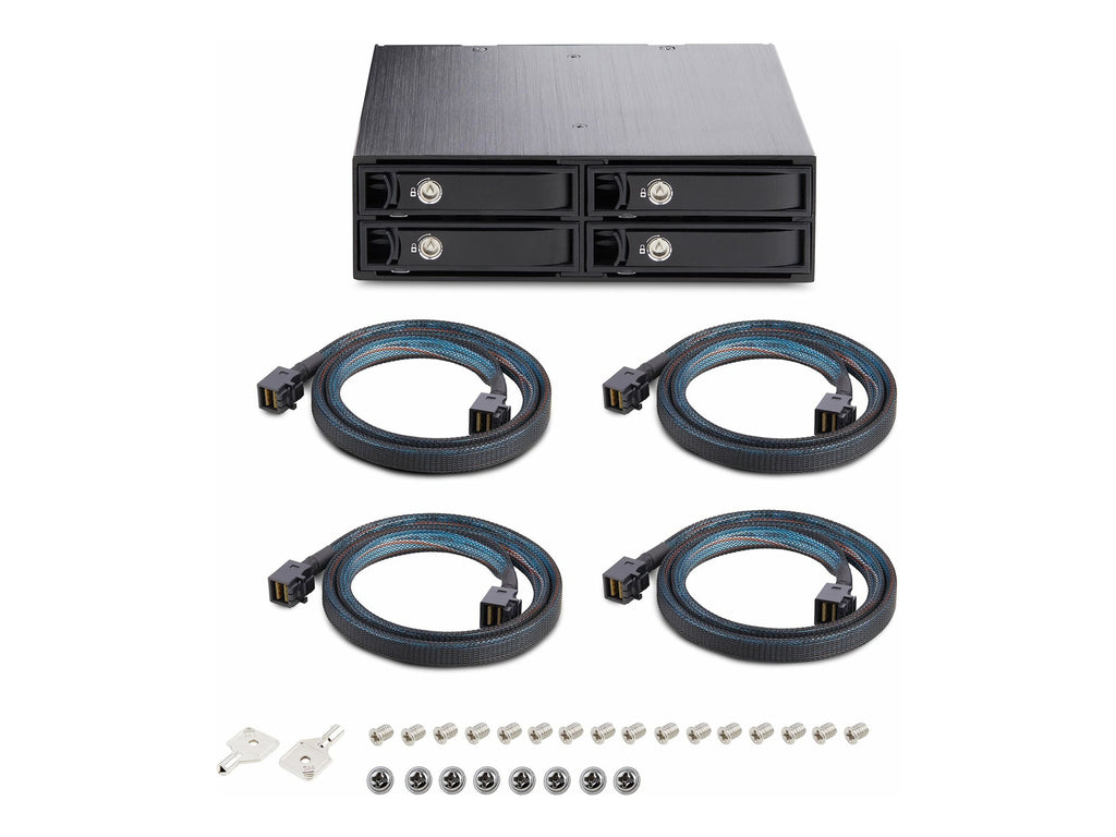 - HASSLE-FREE SETUP: Includes 4x 2ft (61cm) Mini-SAS HD cables and uses a single SATA Power connector from the desktop/server power supply for a rapid installation; Drive and backplane mounting screws included; LEDs for individual drive status and activity
