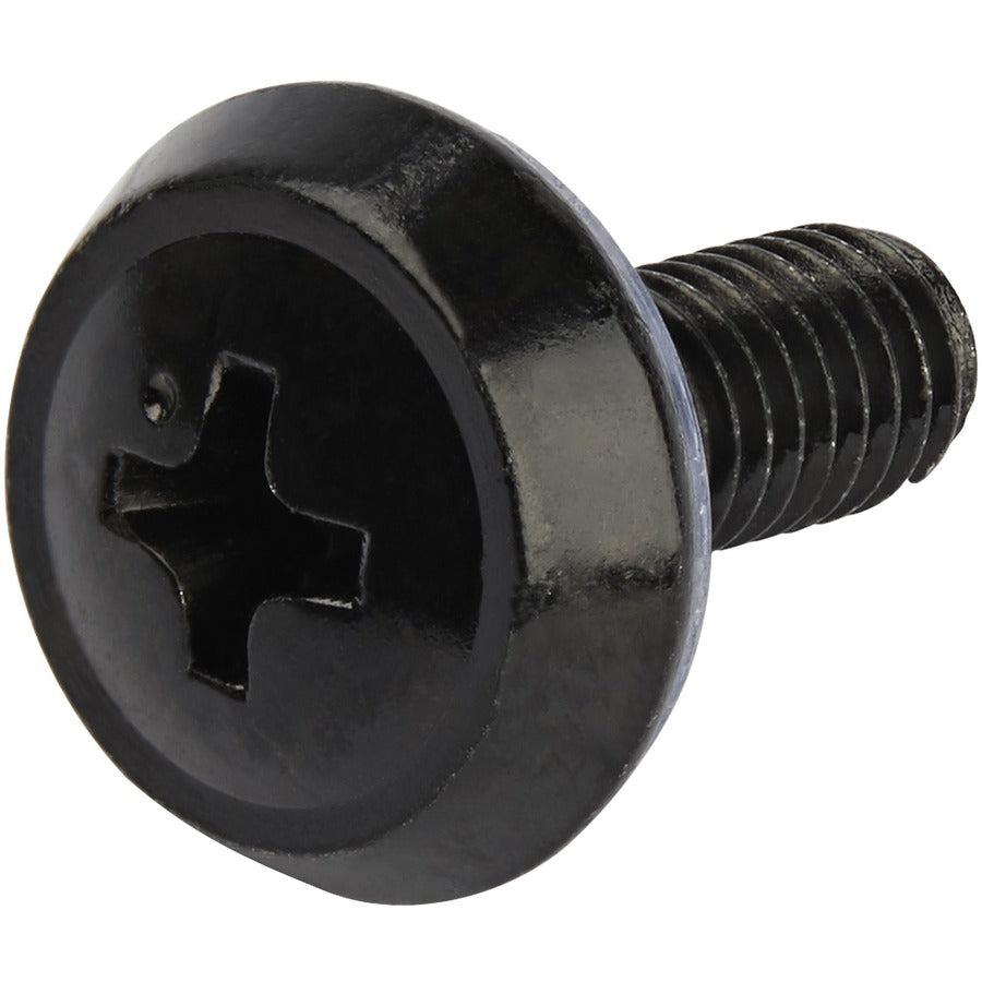 StarTech.com 50 Pack 10-32 Server Rack Cage Nuts and Screws w/Washers - Rack Mount Hardware Kit - Network/IT Equipment Cabinet Clip/Captive Nuts & Bolts for Square Holes - Black - TAA. Type: Bolts & nuts, Material: Steel, Head shape: Pan head. Length: 15.9 mm, Weight: 450 g, Package width: 125 mm. Quantity per pack: 50 pc(s). Master (outer) case length: 295 mm, Master (outer) case width: 255 mm, Master (outer) case height: 170 mm