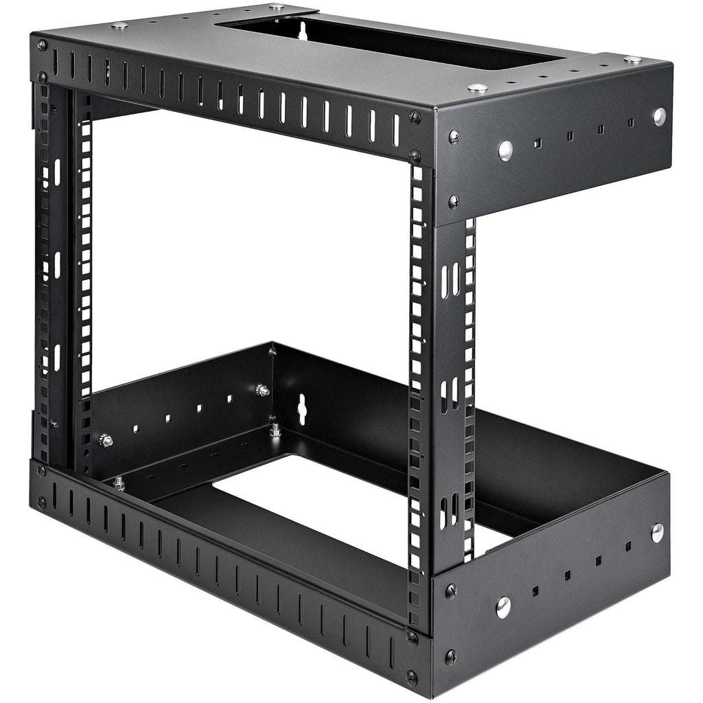 Wall mount network rack 8U heavy-duty open frame with adjustable depth. Perfect for server, AV, and data equipment in space-saving installations.