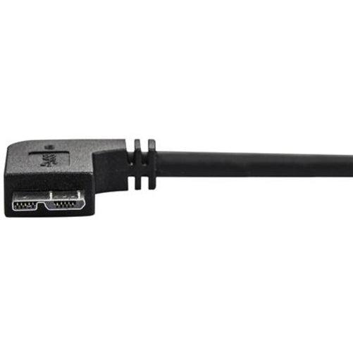 StarTech.com Slim Micro-USB 3.0 Cable - M/M - Right-Angle Micro USB - 2m (6ft). Cable length: 2 m, Connector 1: USB A, Connector 2: Micro-USB B, USB version: USB 3.2 Gen 1 (3.1 Gen 1), Maximum data transfer rate: 5000 Mbit/s, Connector contacts plating: Nickel, Product colour: Black