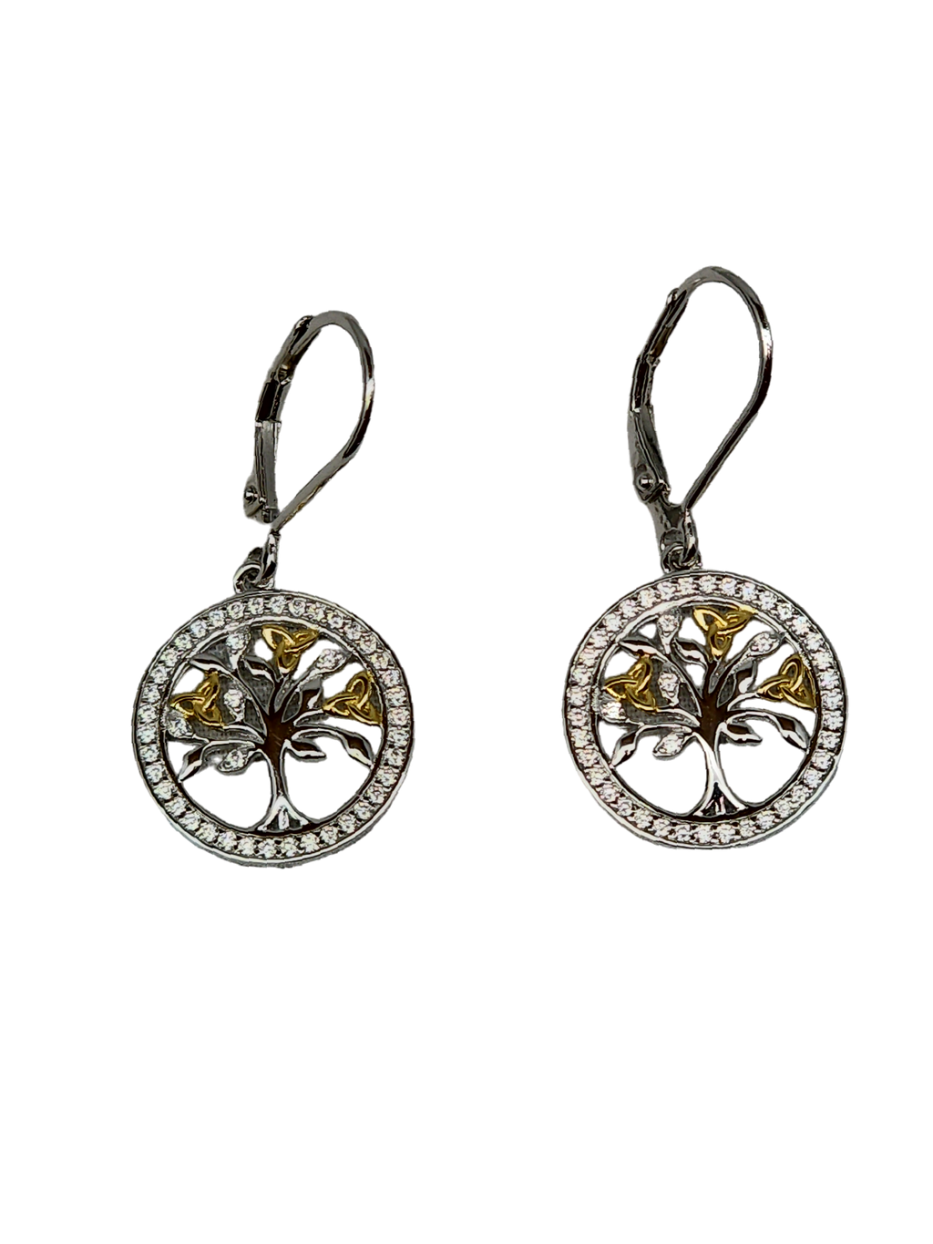 Sterling Silver Cz Gold Plated Tree of Life Earrings