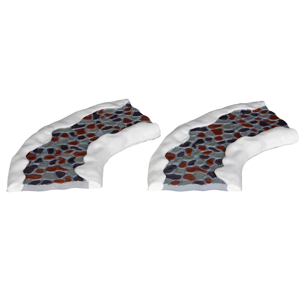 Create a picturesque pathway in your holiday village with this enchanting Stone Road Curved 2 Piece Set. Each section measures about 6 inches long, lending a graceful arc that seamlessly weaves through your wintry scenes. These charming stone pathways invite visitors to stroll through your festive landscapes, perhaps leading them to the cheerful sounds of carolers or the tantalizing aroma of hot cocoa wafting from the village café.