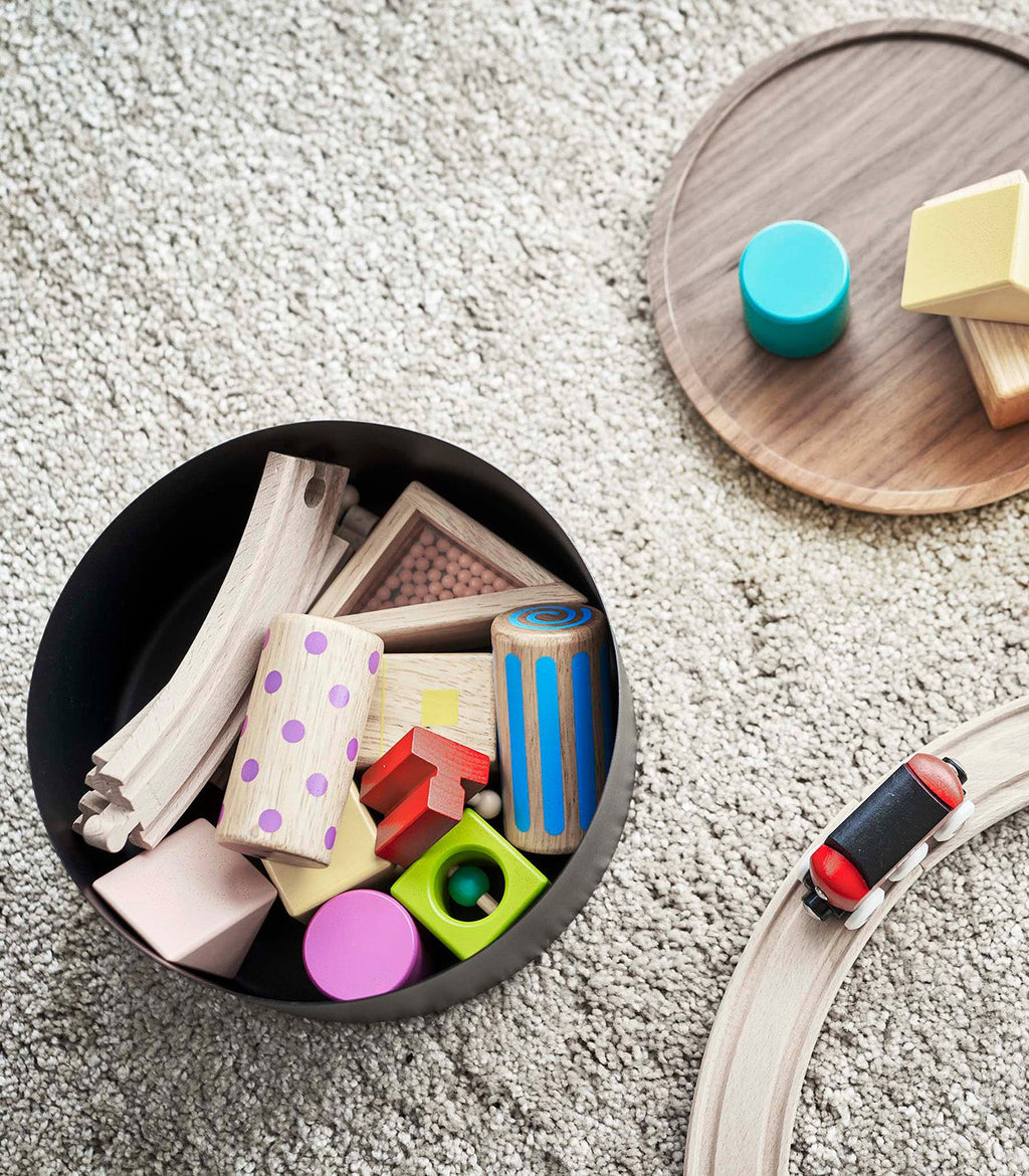 Stack up on these delightful and unique round bins, sure to spruce up any everyday assortment from your tea snacks, sewing kits, or jewelry collections. The wooden lids bring a warm aesthetic to balance the modern steel construction. They also feature a lip around the rim that allows them to double as handy trays to keep your buttons and bobbins from rolling away.