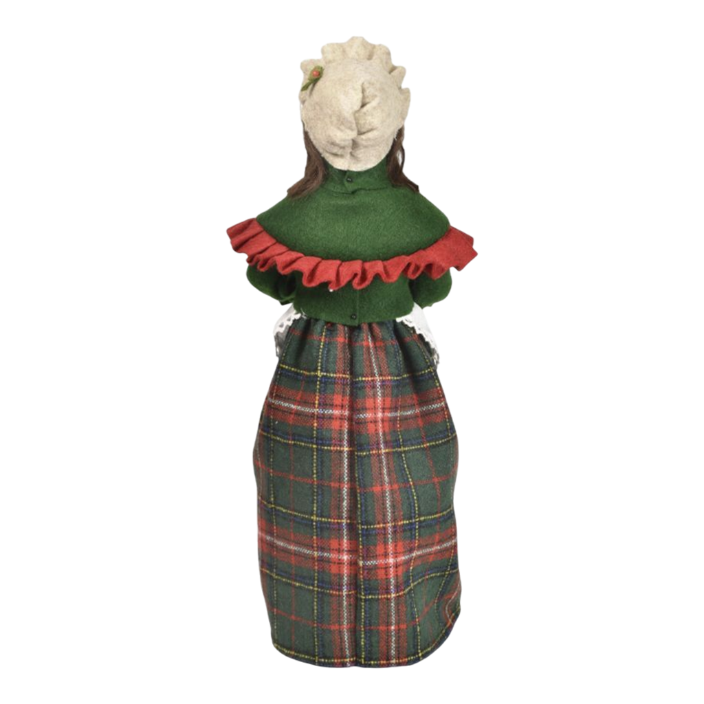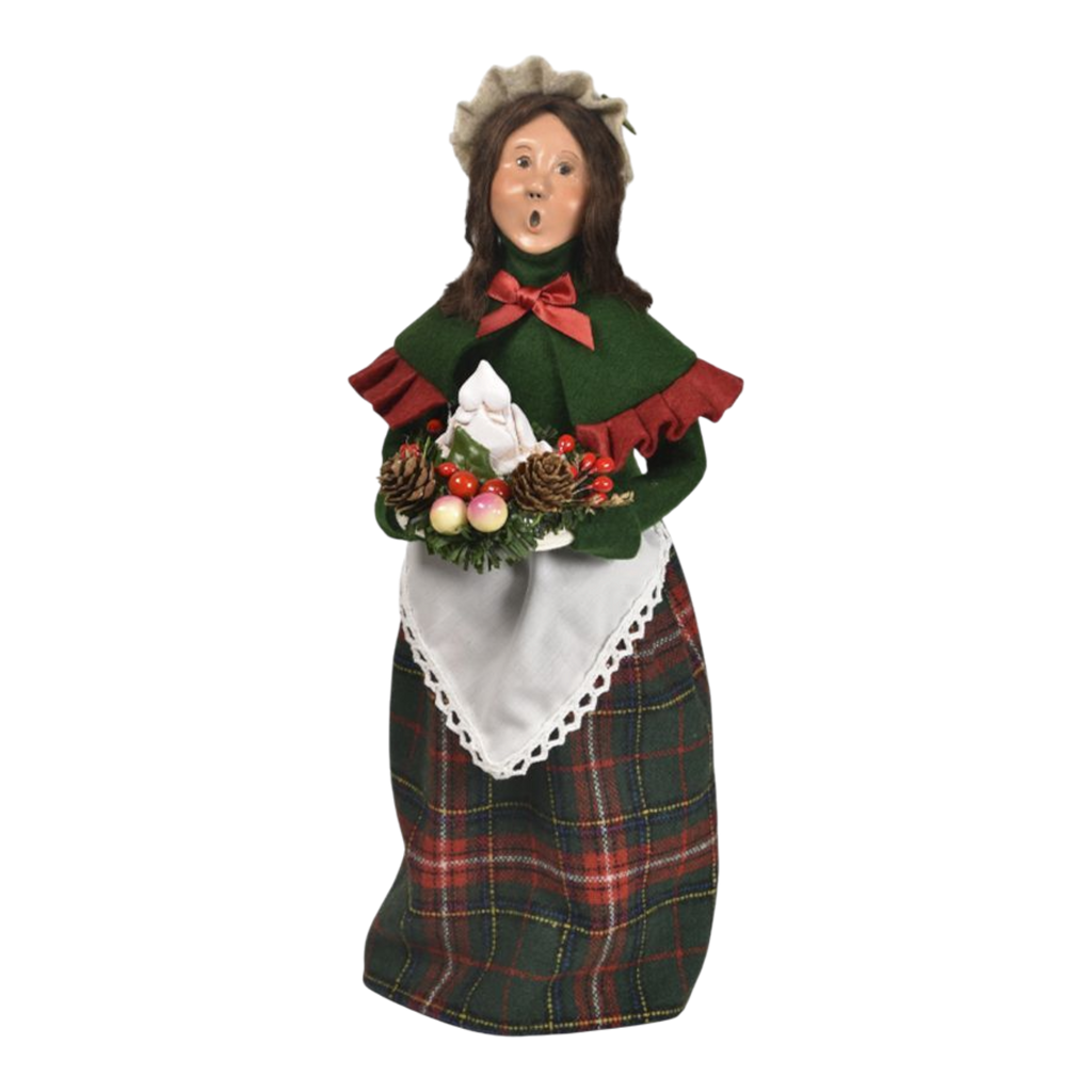 Celebrate the warmth and charm of the holiday season with the delightful Byers Choice Sweets Family Woman Figurine! Standing at an impressive 13 inches tall, this beautifully crafted piece features a woman dressed in a festive plaid skirt and green cape adorned with rich red accents. She carries a charming bouquet of pinecones and colorful decorations, embodying the spirit of Christmas cheer and the joy of holiday gatherings.