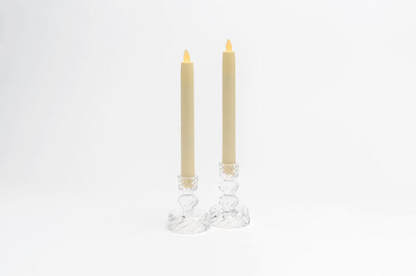 Add a touch of elegance to any space with this stunning Swirl Glass Taper Holder! Standing at 4.5 inches tall, its intricate design and shimmering glass will catch the light beautifully, creating a warm and inviting atmosphere. Perfect for dinner parties, cozy nights in, or as a thoughtful gift for someone special.