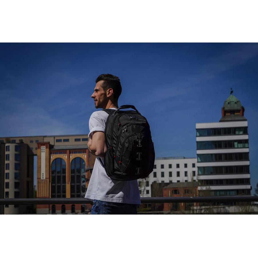 Swissdigital Design Pixel SD-857 Carrying Case (Backpack) for 15.6" to 16" Apple iPhone iPad Notebook, MacBook Pro - Black - Water Resistant, Rain Resistant - Polyester Body - Checkpoint Friendly - Shoulder Strap, Handle, Luggage Strap, Trolley Strap - 19.3" Height x 12.3" Width x 7.5" Depth - Unisex