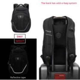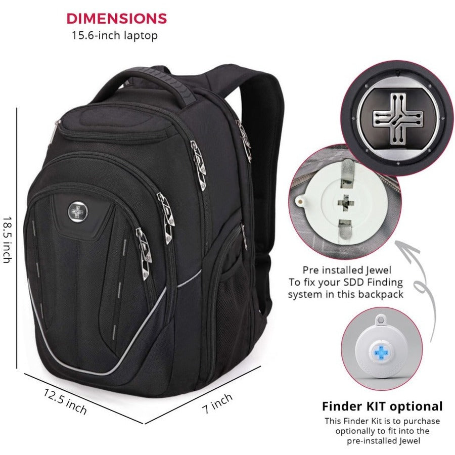Swissdigital Design TERABYTE F J16BTF-02 Carrying Case (Backpack) for 15.6" to 16" Apple iPhone iPad MacBook Pro, Notebook, Travel Essential - Black/Gray - Shock Proof - Polyester Fabric, Nylon Body - Checkpoint Friendly - Shoulder Strap, Luggage Strap - 18.5" Height x 12.5" Width x 7" Depth - Large Size - Male