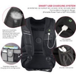 TERABYTE is a large black backpack with grey accents. The bag is perfect for students and professionals. With 15 individual compartments, it offers an incredible amount of space to store and organize items, in addition to its other smart features.