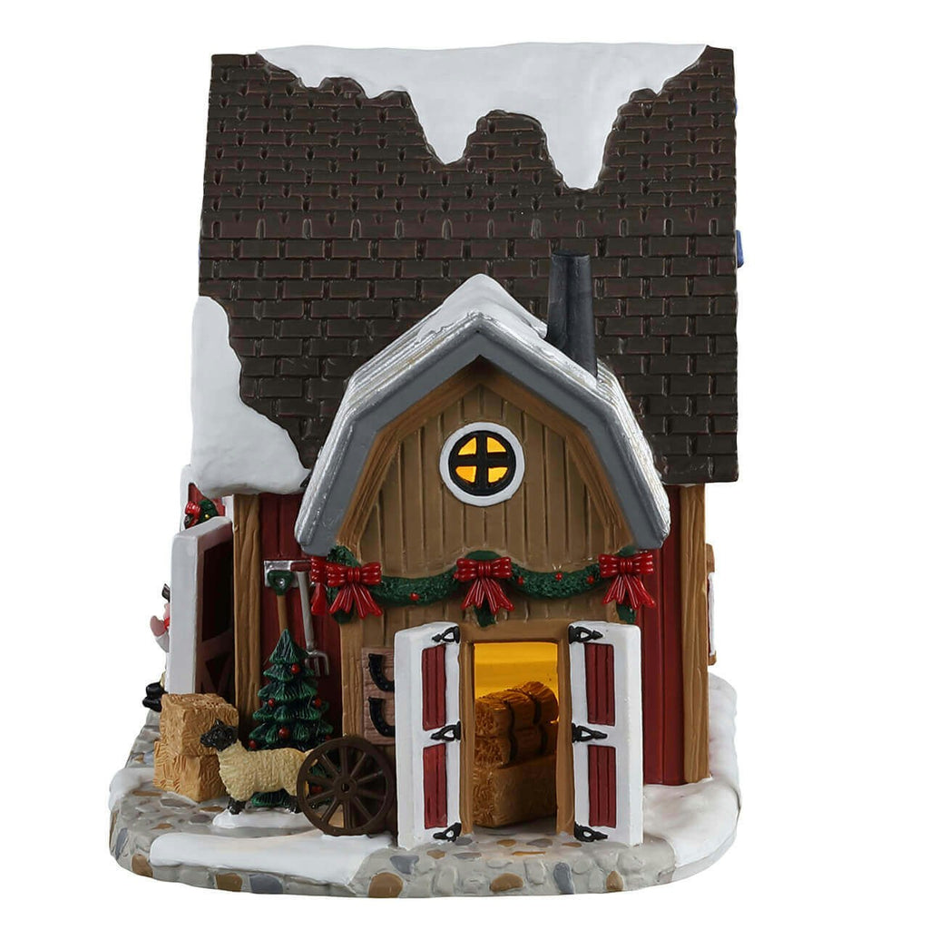 There's a Talent Contest at Flanagan's Barn and you won't want to miss it. This traditional red barn has opened its big doors and it's welcoming the best talent in town. In front of the barn, you can see two people playing guitar and singing while a young boy dances. Next to them are bales of hay. This Christmas-decorated barn is also home to a sheep, a pig, and a wise owl.