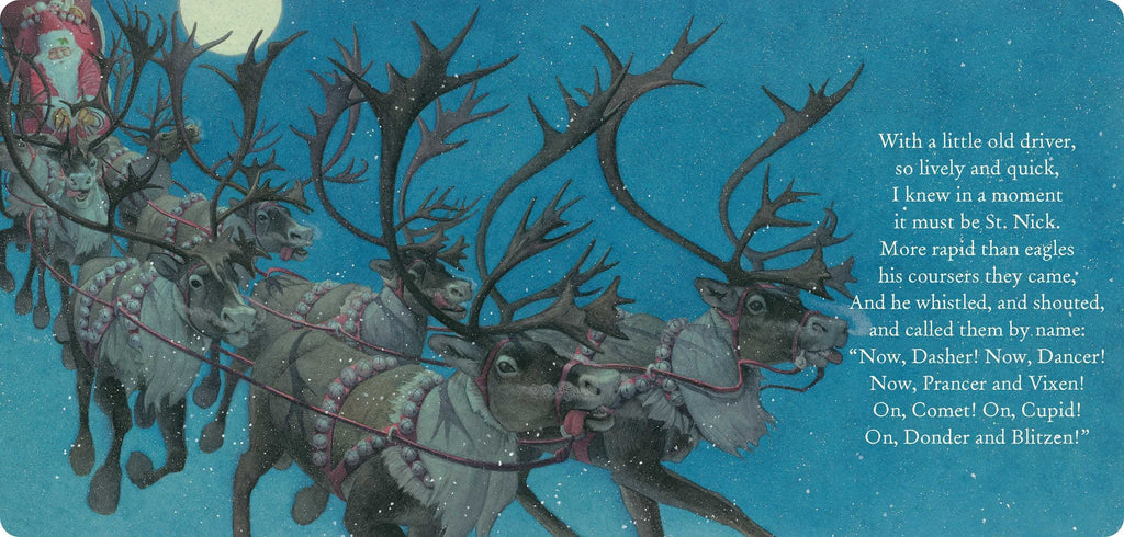 Browse the Complete Gifts & Holiday Collection Let your holiday spirit ring with The Night Before Christmas Sleigh Bell Gift Set. Featuring illustrations from #1 New York Times bestselling illustrator Charles Santore, see this Christmas children’s classic jump of the page like you’ve never seen it before. Start your shopping season early with this all-in-one Christmas gift set. With a Board Book of The Night Before Christmas and a beautiful, ornament-ready sleigh bell complete with iconic red ribbon, this gift set is sure to be a family favorite.