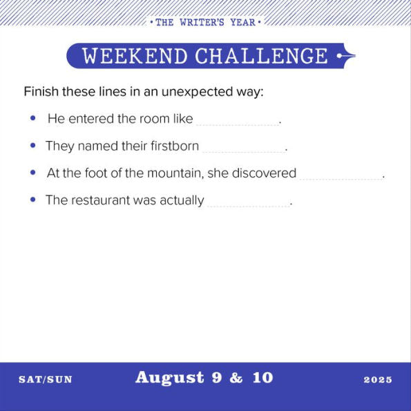 "The Writer's Year 2025 Page-A-Day Calendar" is an invaluable tool for writers seeking daily inspiration, prompts, and quotes to fuel their creativity and productivity. Designed by Chris Barsanti, this calendar is packed with 365 unique prompts, challenges, and motivational quotes aimed at sparking the imagination and helping writers of all levels craft their best work throughout the year. The clean, thoughtful design ensures that each day is a fresh opportunity to engage with your writing practice.