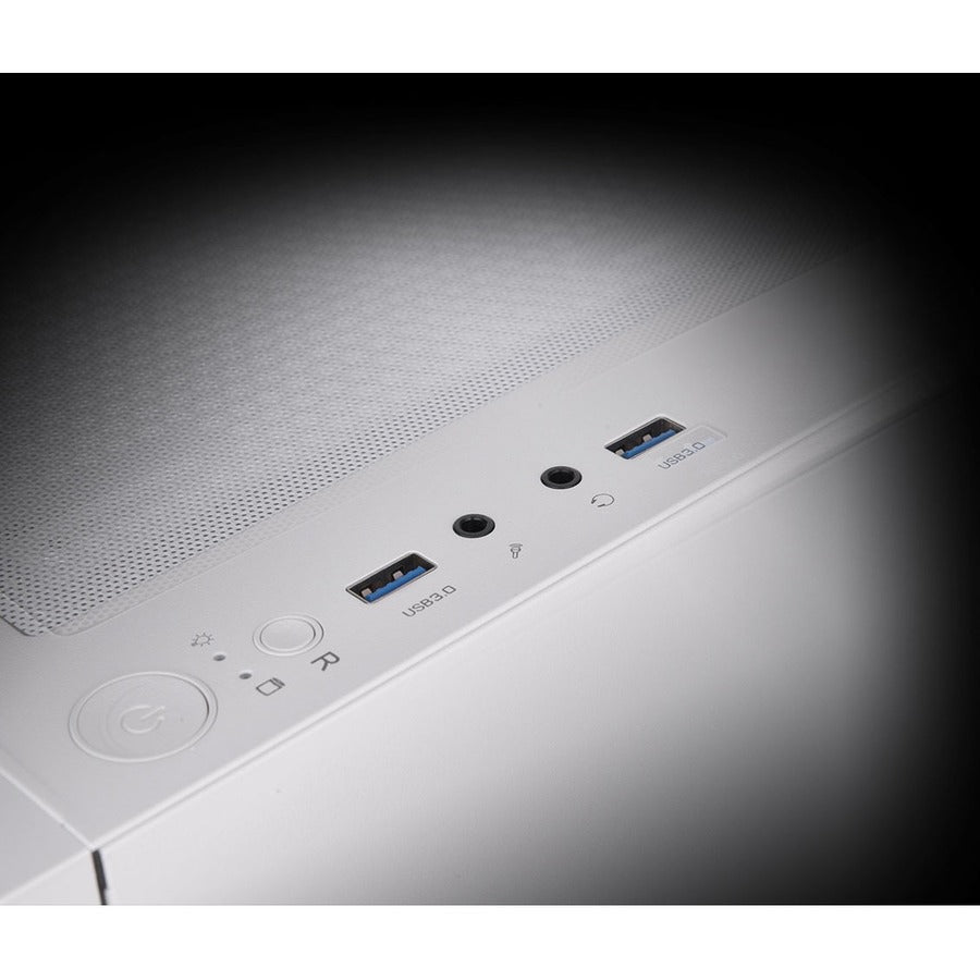 S200 TG ARGB Snow mid-tower chassis comes with a large airflow-optimized mesh panel featuring an elegantly designed strip and a TT logo at the front for massive airflow performance.