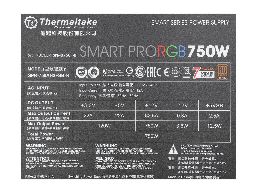 Thermaltake, as the pioneer who incorporates RGB lights into PSU, has launched the Thermaltake Smart Pro RGB Bronze Series, coming with a pre-installed, patented 256 Colors Riing 14 RGB fan with 5 lighting modes to choose from and built-in memory.