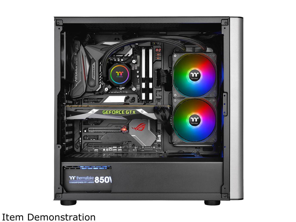 Thermaltake TH240 ARGB Sync is an all-in-one liquid cooler which includes two 120mm powerful high static pressure fans, and a high performance radiator along with a water block, 16.8M RGB color illumination with pre-set lighting modes via the smart fan controller, or synchronize with motherboard RGB software for stunning RGB colors.