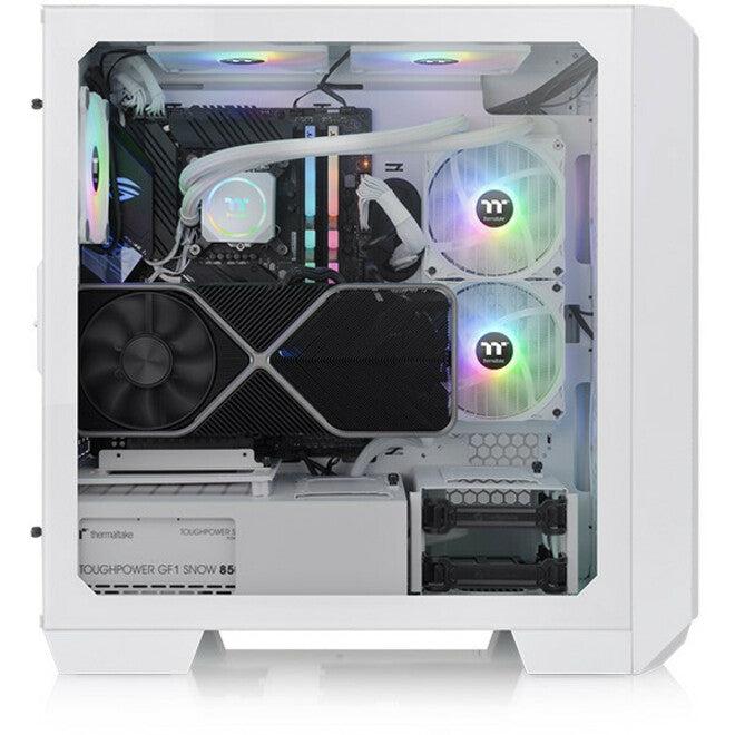 Thermaltake View 300 MX Snow Computer Case - Mid-tower - White - SPCC, Tempered Glass, Acrylonitrile Butadiene Styrene (ABS) - 6 x Bay - 2 x 7.87" x Fan(s) Installed - 0 - Mini ITX, Micro ATX, ATX, EATX Motherboard Supported - 10 x Fan(s) Supported - 2 x Internal 3.5" Bay - 4 x Internal 2.5" Bay - 7x Slot(s) - 3 x USB(s) - 1 x Audio In - 1 x Audio Out - Fan Cooler