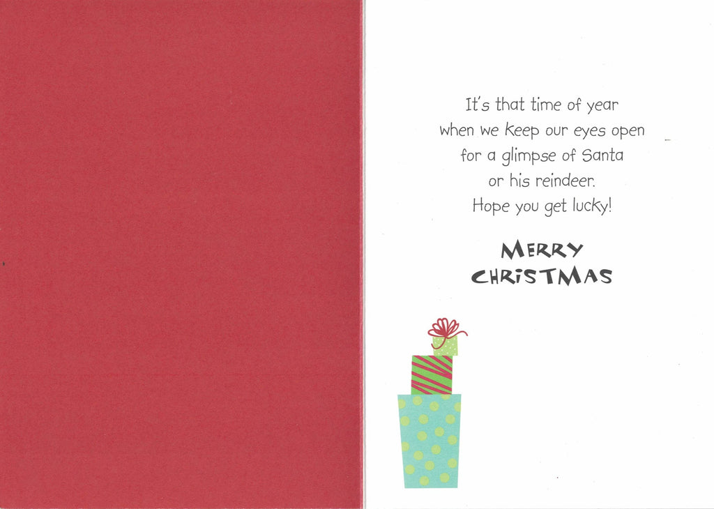 inside: It's that time of year when we keep our eyes open for a glimpse of Santa or his reindeer. Hope you get lucky! Merry Christmas