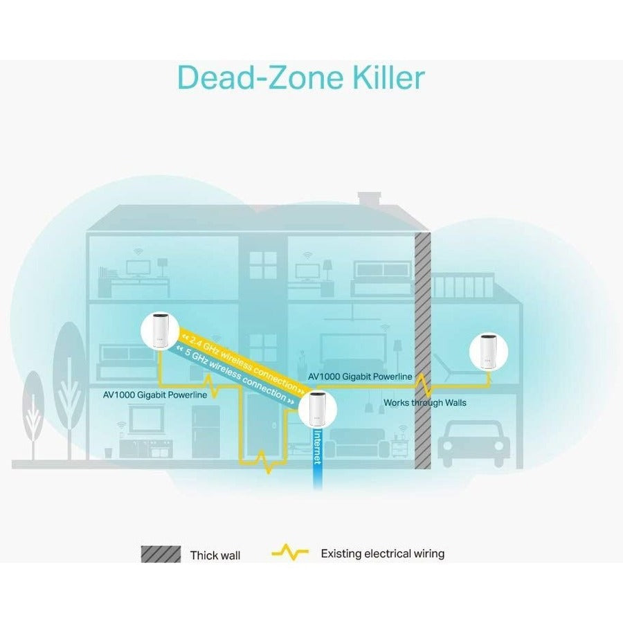 Deco P9 combines dual-band Wi-Fi and powerline to establish a stronger mesh network.