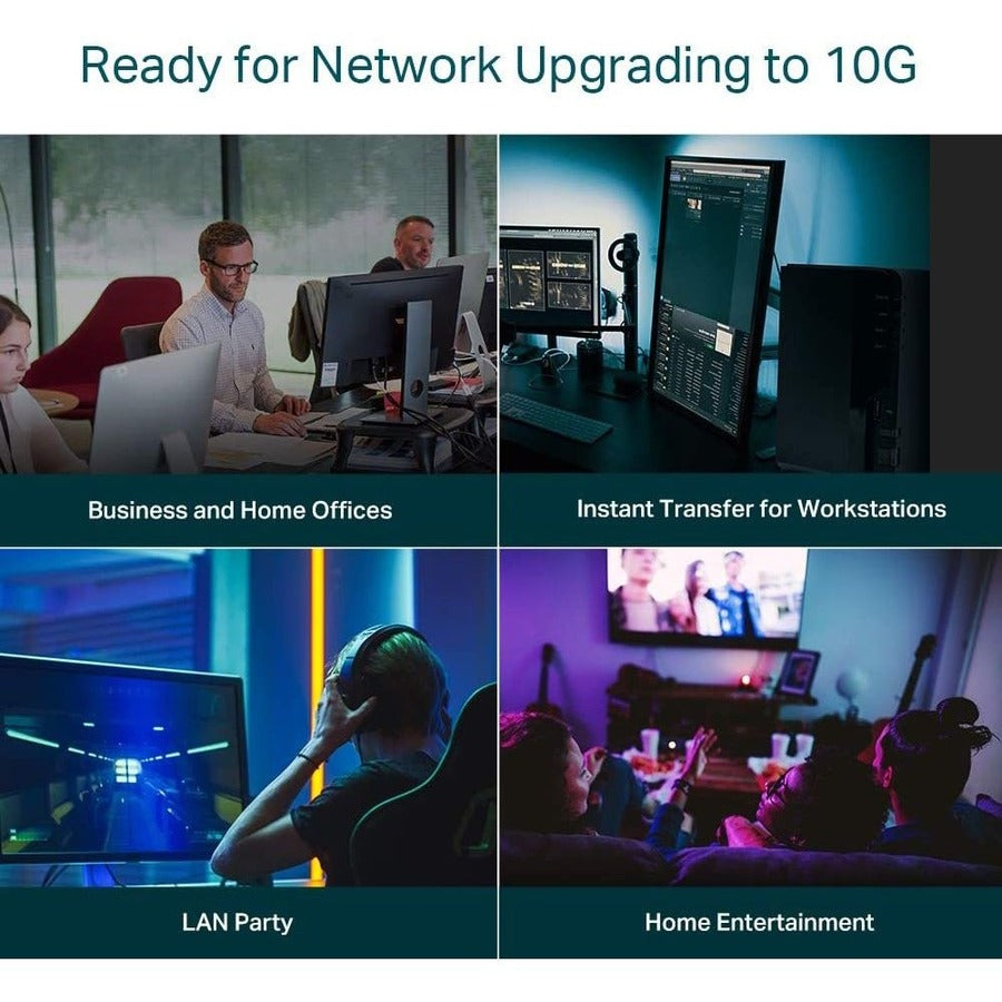 A: This switch delivers up to 10 times faster data transfer speeds with support for multiple speed tiers (10G/5G/2.5G/1G), making it ideal for high-bandwidth applications and future-proofing your network infrastructure.