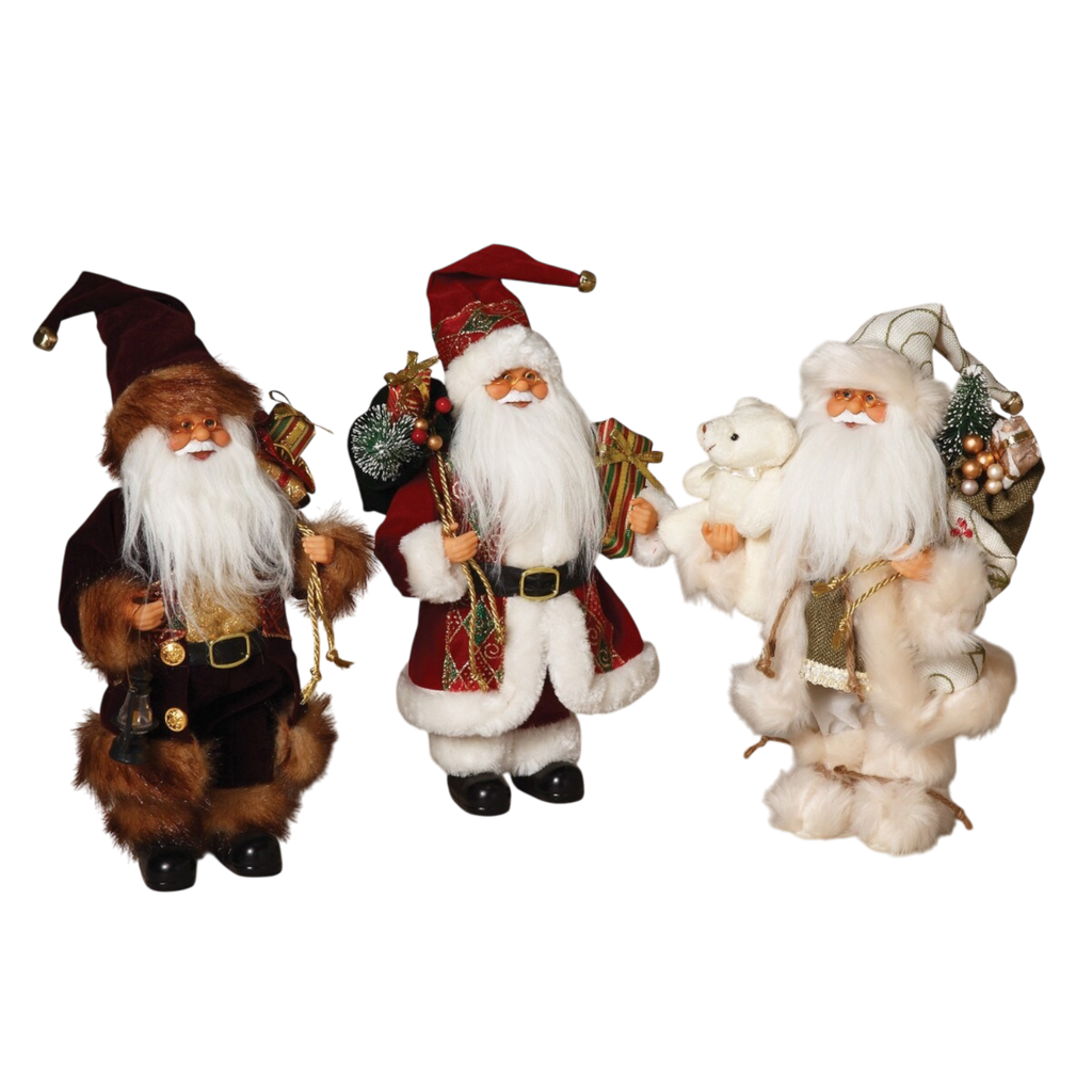 Celebrate the magic of the holiday season with our Traditional Standing Santa collection, featuring three charming designs, each standing 12 inches tall! These delightful Santa figures bring warmth and nostalgia to your festive decor, offering three unique styles that encapsulate the spirit of Christmas.