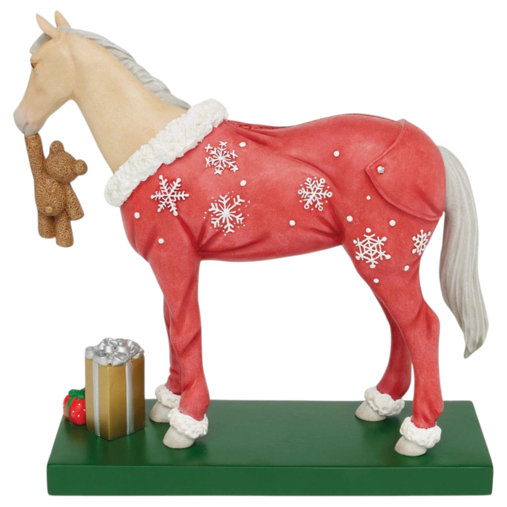 Get ready to add a splash of festive cheer to your holiday decor with the Christmas Pajamas Figurine, a delightful piece from The Trail of Painted Ponies collection by Enesco. Designed by the talented artist Aimee Skee, this charming horse is decked out in a cozy red pajama outfit, complete with whimsical snowflakes and fluffy cuffs. What makes this figurine extra special is the adorable teddy bear it carries, perfect for capturing the joy and warmth of the Christmas season!
