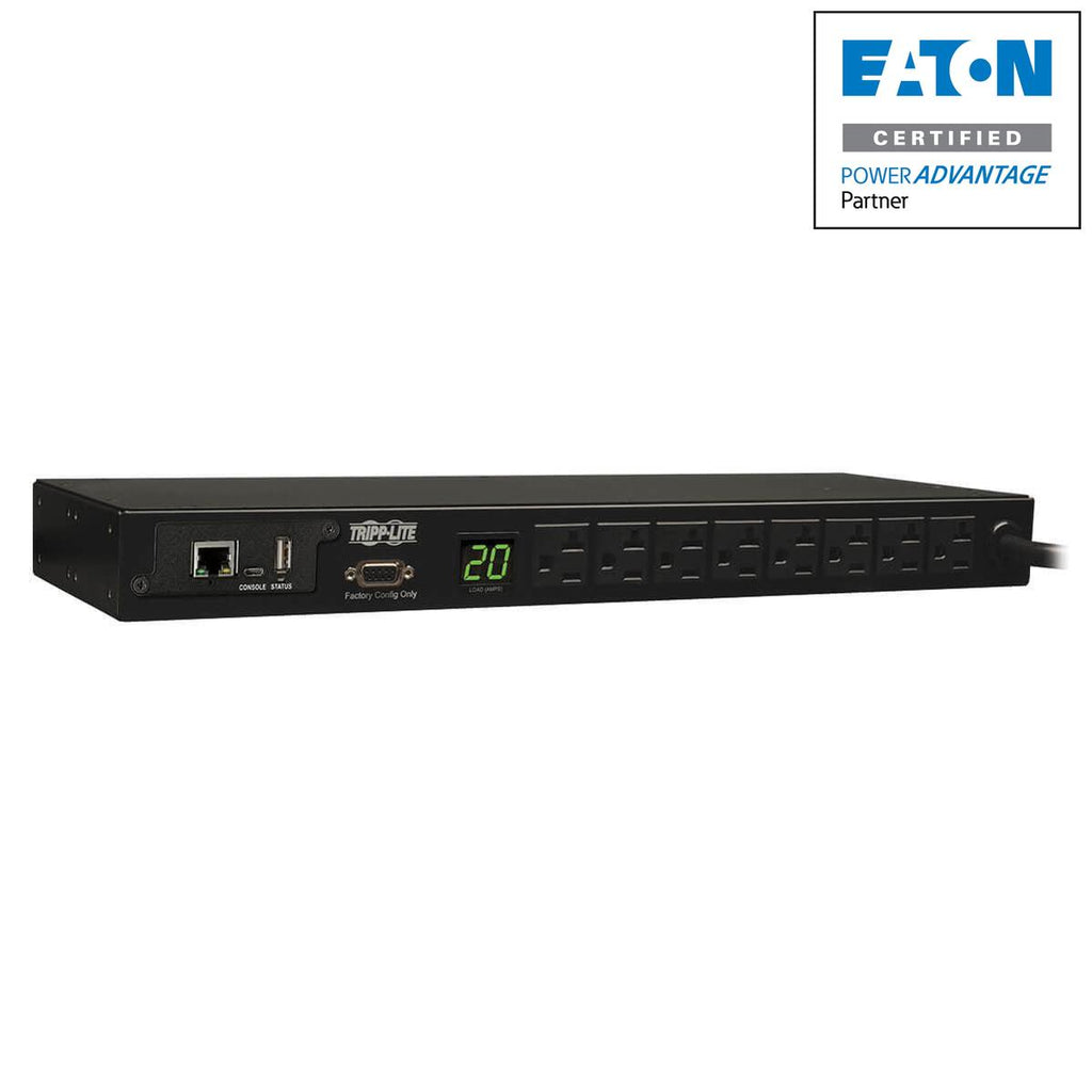 1U power distribution unit for server racks. Smart monitored PDU with remote management and 8 outlets for data center applications.