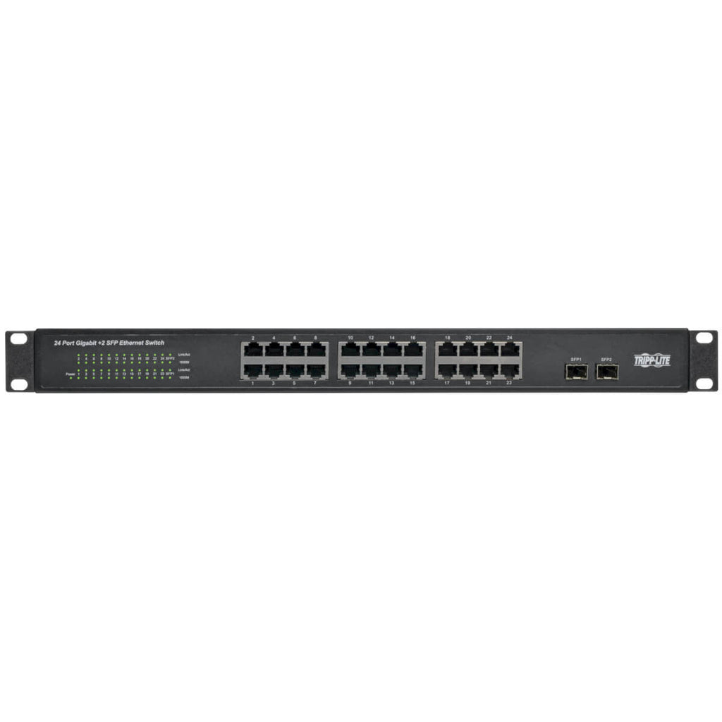 Unmanaged Network Switch for Home/Small Offices or Workgroups - 24 twisted-pair RJ45 Gigabit Ethernet ports - 2 mini-GBIC SFP ports - Auto-negotiable 10/100/1000 Mbps - Automatic MDI/MDIX cross-over detection - 52 Gbps switching capacity (2 Gbps per port with full duplex) - Easy-to-read LEDs indicate connection and activity status for each port - Supports 9k jumbo frames - Supports MAC address auto-learning and auto-aging - Supports 802.3x flow control (full duplex) and back pressure (half duplex)