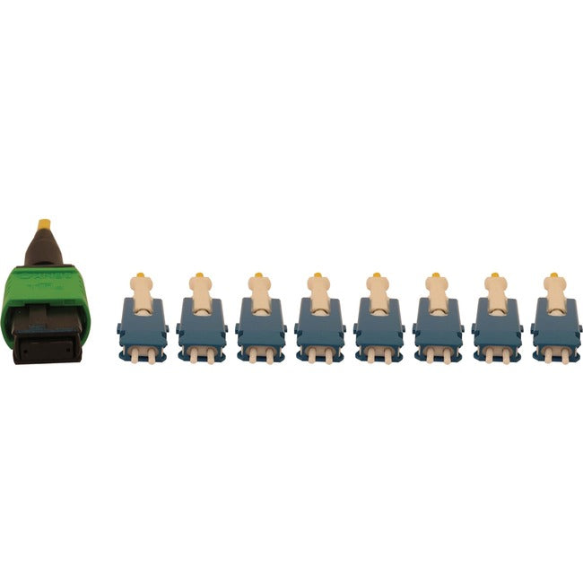 The N390-02M-8S-AP is a premium singlemode fiber optic cable that supports 400 Gb Ethernet speeds for transmitting data and voice signals over short distances. As the amount of traffic in data networks grows, so does the need for next-generation devices and fiber cables to support much higher bandwidths in cloud services, hyperscale data centers, telecom applications and equipment OEM companies. This OS2 breakout cable is an ideal choice for 400 Gb Ethernet applications. It is also backward compatible with 40 Gb and 100 Gb networks, so you can future-proof your current application for an eventual upgrade to 400 Gb.