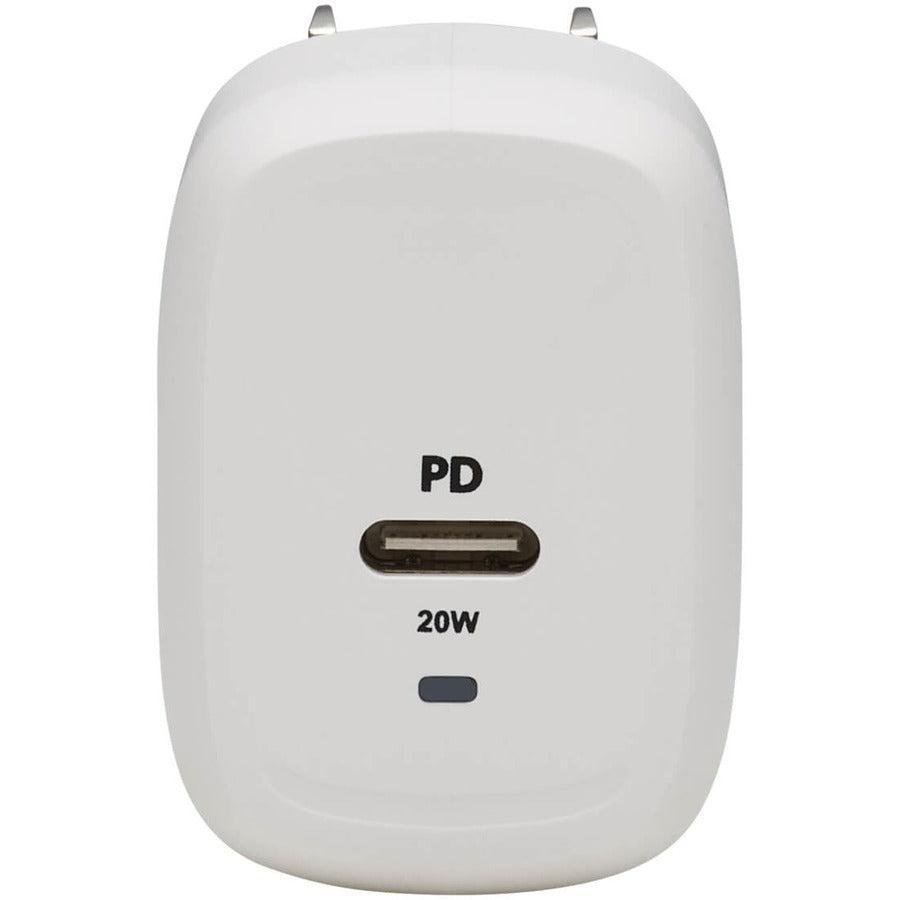 20W USB Type-C Charger Gets Your Mobile Device Ready in a Hurry, Wherever You Are This single-port USB charger lets you quickly and safely charge your USB-C mobile device. Plug it into any NEMA 1-15R, NEMA 5-15R or NEMA 5-15/20R AC outlet to ensure your laptop, smartphone, tablet or other USB-C device charges at its fastest possible speed. The USB-C port supports USB Power Delivery (PD) 3.0 charging up to 5V 3A (15W) and 9V 2.22A (20W).