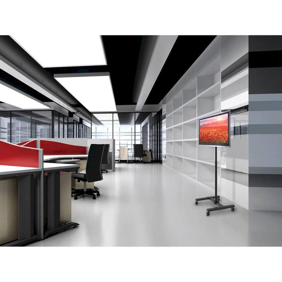 Move Your Flat-Panel Display Wherever Your Audience Is Tripp Lite's DMC1342S combines a height-adjustable TV stand with the convenience of a rolling cart. Mount your flat-panel television or monitor to this mobile TV stand, and then roll it safely and smoothly from room to room or from one corner of the room to another. It is recommended for classrooms, trade shows, lecture halls, offices, auditoriums, conference rooms, hotels and other settings where you need your TV or monitor to be mobile. The scratch-resistant powder-coated finish tolerates frequent handling and blends easily into any décor.