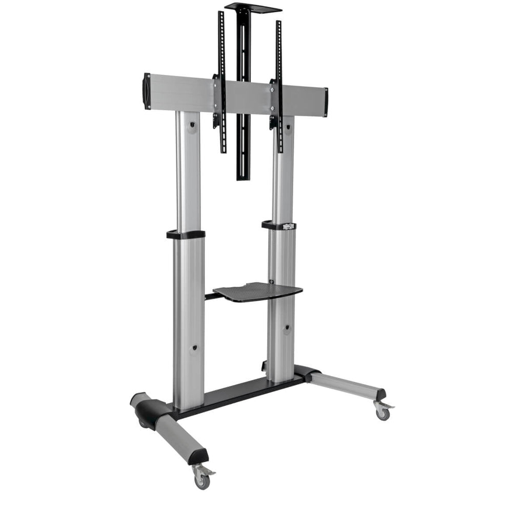 Tripp Lite DMCS60100XX Heavy-Duty Rolling TV Stand, Height Adjustable, 60" - 100" Screens. Maximum weight capacity: 50 kg, Minimum screen size: 152.4 cm (60"), Maximum screen size: 2.54 m (100"), Minimum VESA mount: 200 x 200 mm, Maximum VESA mount: 1000 x 600 mm. Product colour: Black, Silver