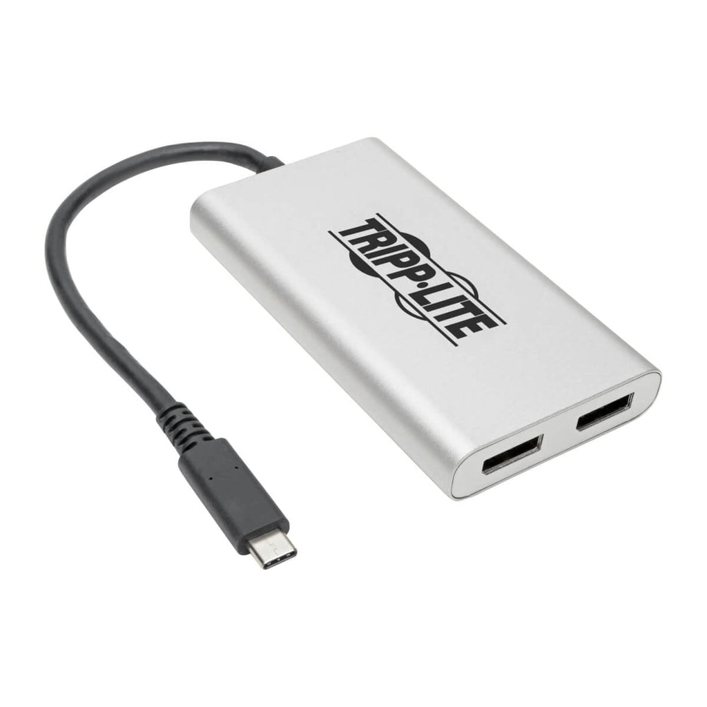 Tripp Lite MTB3-002-DP Dual-Monitor Thunderbolt 3 to DisplayPort Adapter - 4K/5K @ 60 Hz, M/2xF, 4:4:4, Silver. USB version: 3.2 Gen 1 (3.1 Gen 1), USB connector type: USB Type-C, USB connector gender: Male. Product colour: Silver, USB cable length: 0.12 m. Width: 108 mm, Depth: 59.9 mm, Height: 15 mm. Products per master (outer) case: 10 pc(s), Master (outer) case width: 294.9 mm, Master (outer) case length: 134.9 mm