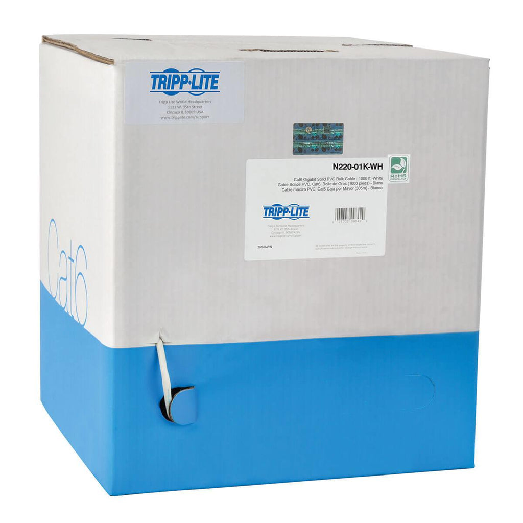 Tripp Lite N220-01K-WH Cat6 Gigabit Bulk UTP Stranded 24 AWG CMR PVC Cable, White, 1000 ft. (304.8 m) TAA. Cable length: 304.8 m, Cable standard: Cat6, Data transfer rate: 1000 Mbit/s