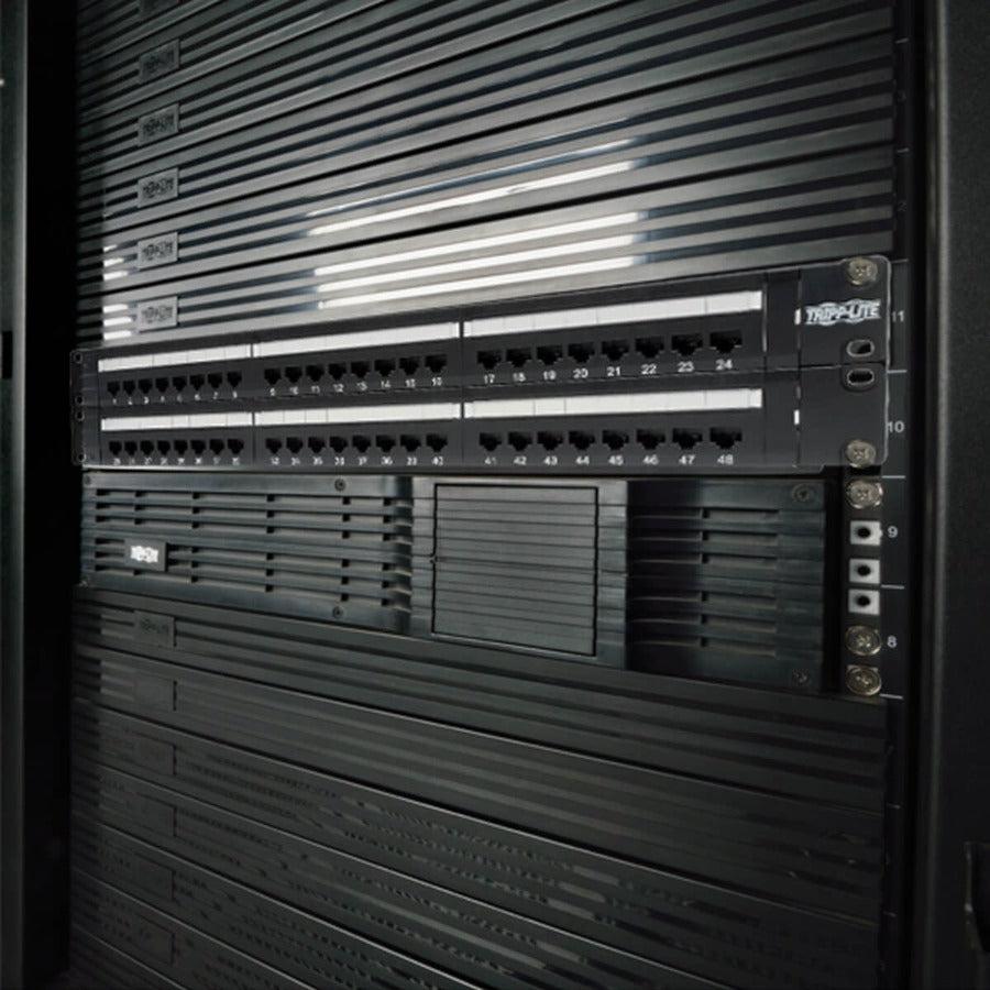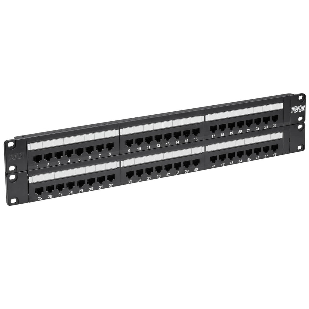 Tripp Lite N252-048 48-Port 2U Rack-Mount Cat6/Cat5 110 Patch Panel, 568B, RJ45 Ethernet, TAA. Connector(s): RJ-45, Cable types supported: Cat6,Cat6a,Cat6e. Product colour: Black, Mounting: Rack mounting, Rack capacity: 2U. Width: 480.1 mm, Height: 53.3 mm, Depth: 25.4 mm. Package width: 500.4 mm, Package length: 11.9 cm, Package depth: 119.4 mm. Country of origin: Taiwan, Master (outer) case width: 530.9 mm, Master (outer) case length: 304.8 mm