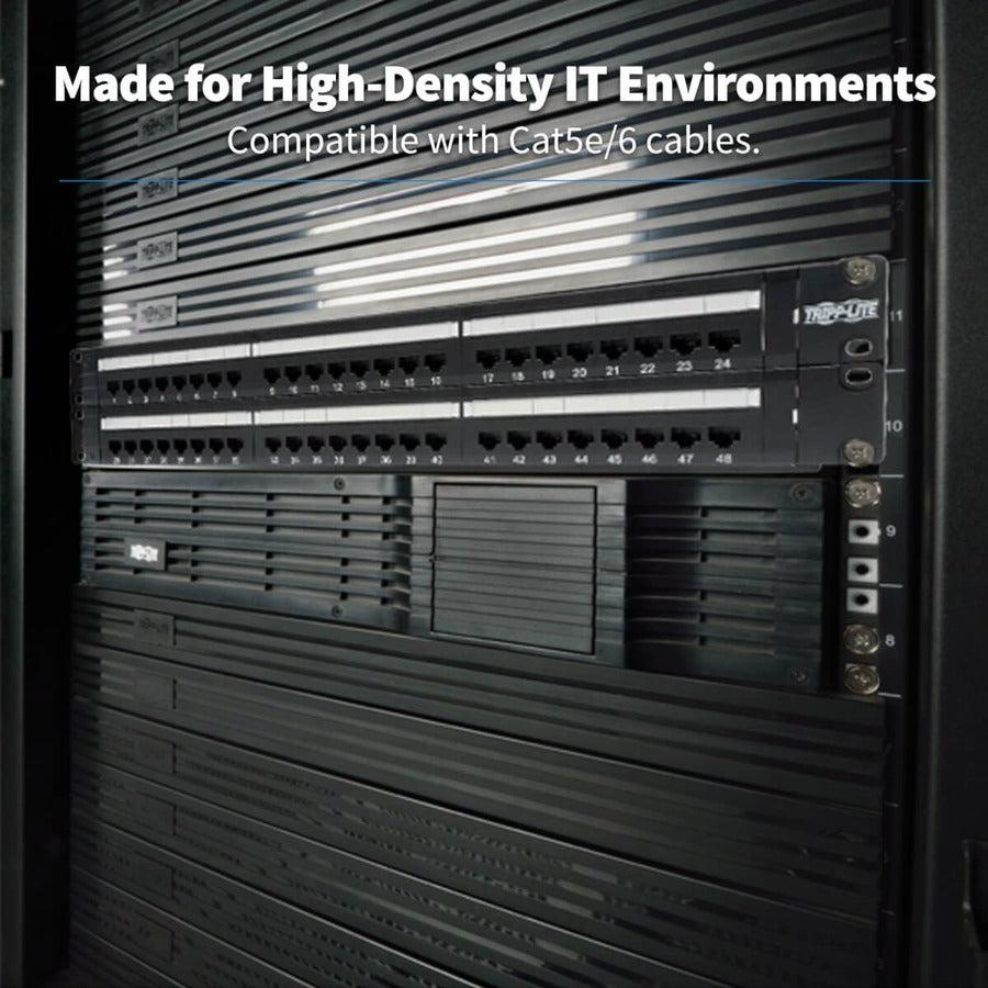 Tripp Lite's Category 6 Patch Panels offer you all the functionality and compatibility as any name brand. Each panel comes with 110-type termination, while meeting and exceeding EIA/TIA TSB-40 Category 6 connecting hardware specifications. Color coded for both EIA/TIA 568A & 568B installations. 48 ports ensure a wide range of plug-n-play options. The clear numbering on both the front and back of each panel gives you a quick and easy way to identify cable runs and the high density 19in wide, 2U High, panel design will save you valuable space in on the rack.